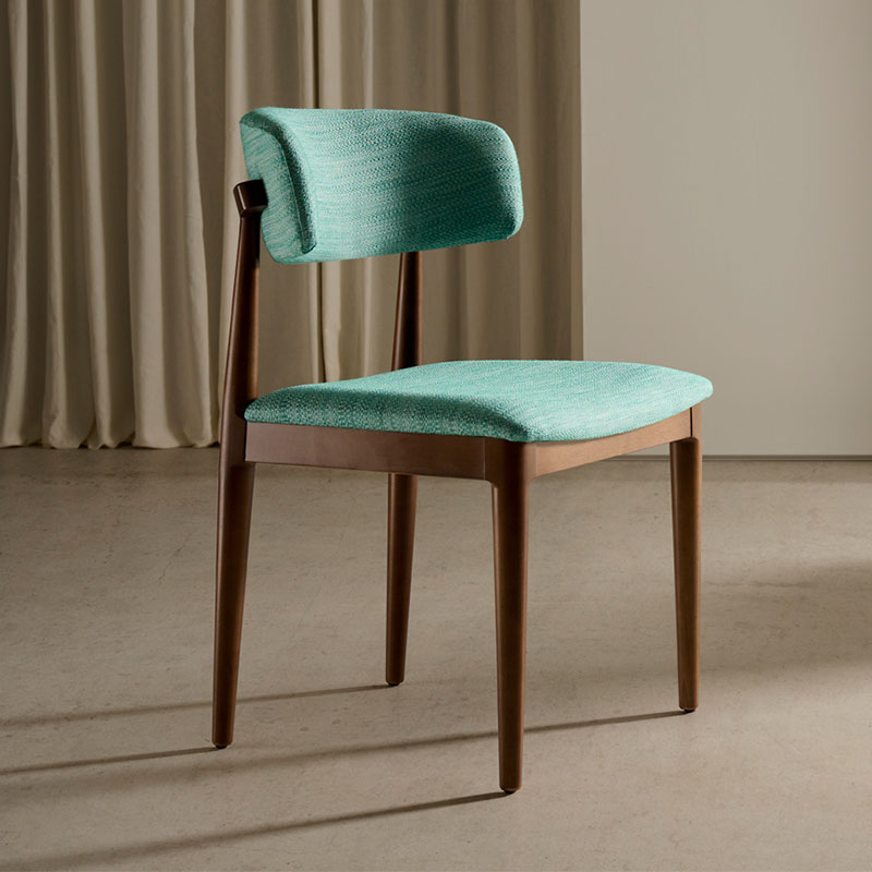 Silla tapizada y madera para uso interior en hostelería, hogar y oficina.